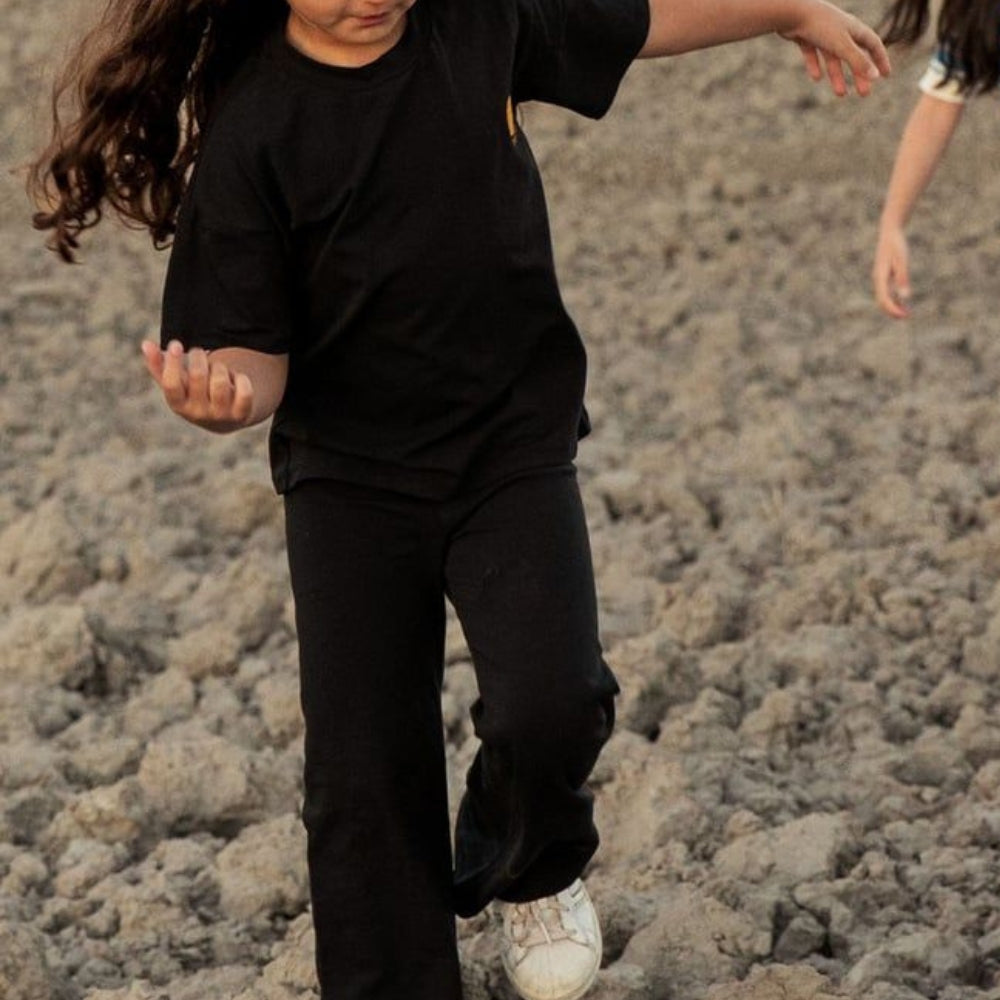 Mini Rodini Byxor för flickor bell bottoms Planet Svart