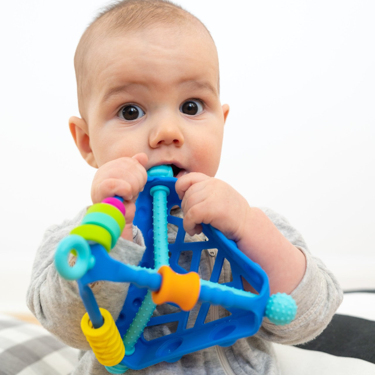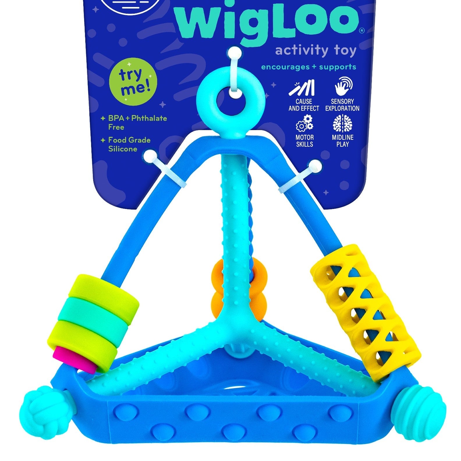 Den sensoriska leksaken Wigloo är tillverkad helt i silikon och har rörliga delar, olika texturer och kontrasterande färger för att stimulera ditt barns sinnen.