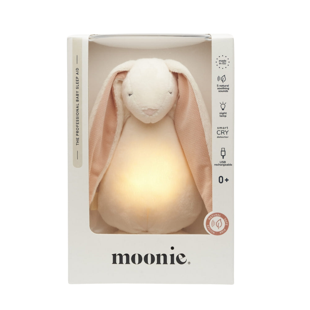 Moonies söta Noisy Bunny 2.0 är en innovativ nästa generations sömnhjälpmedel, utformad med tanke på småbarn och deras fridfulla sömn.