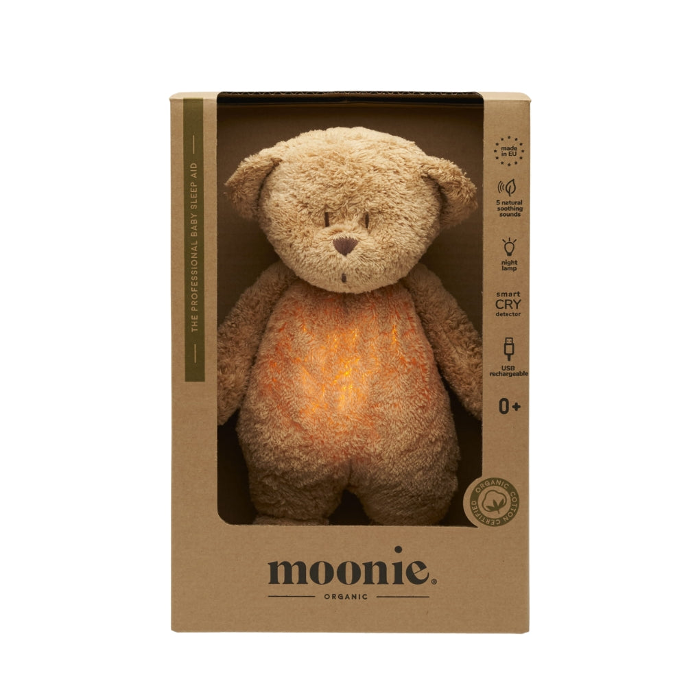 Moonies söta surrande nallebjörn 2.0 är en ny generation innovativa sömnhjälpmedel, utformade med småbarn och deras fridfulla sömn i åtanke.