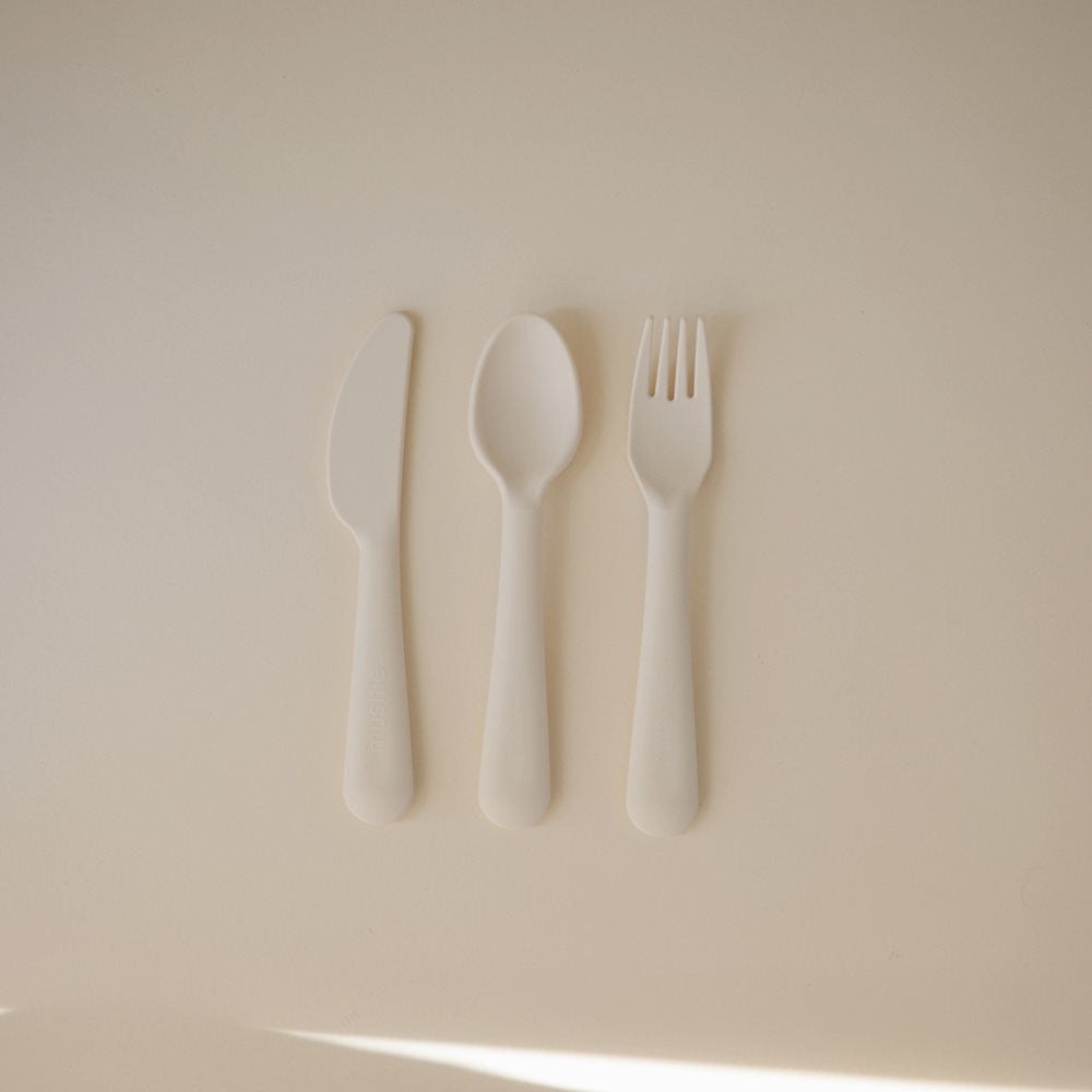 Barnbestick 3 delar i elfenben från märket Mushie.