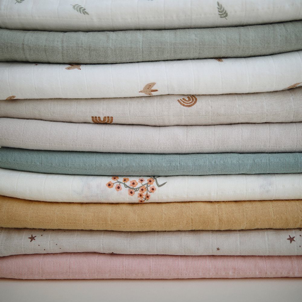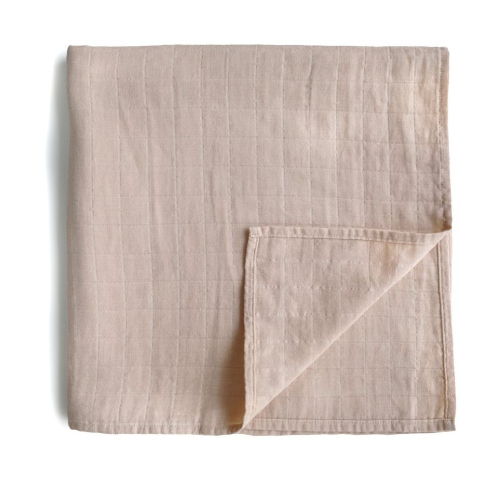 Mushie Muslin wrap är perfekt för daglig vård eller som ett lakan för vaggan eller moses korg.