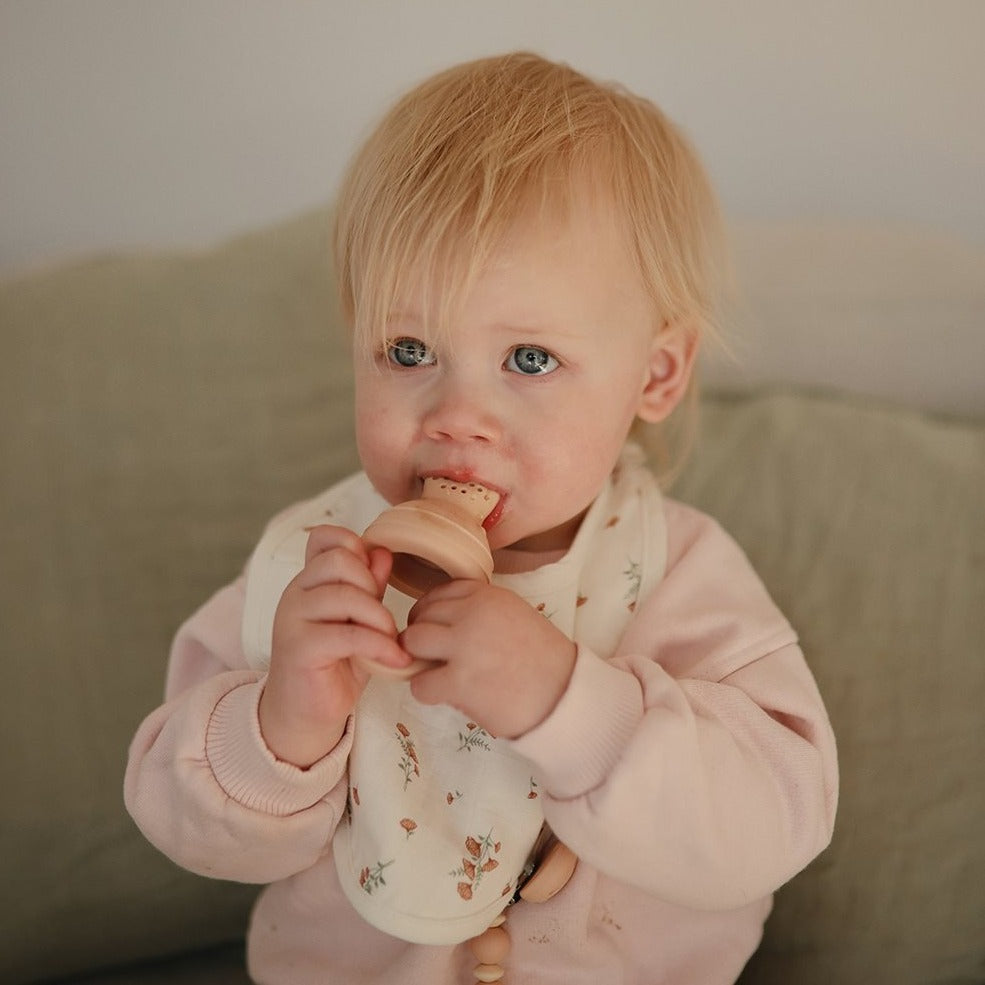 Den är tillverkad av mjuk, flexibel och giftfri silikon som är säker att tugga och suga på.