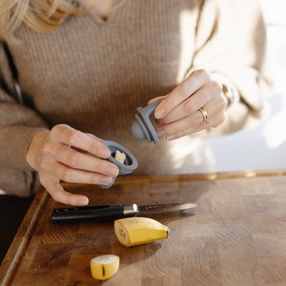 En bitring för att servera mat - mjuk frukt och grönsaker och tillagad mat.