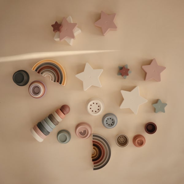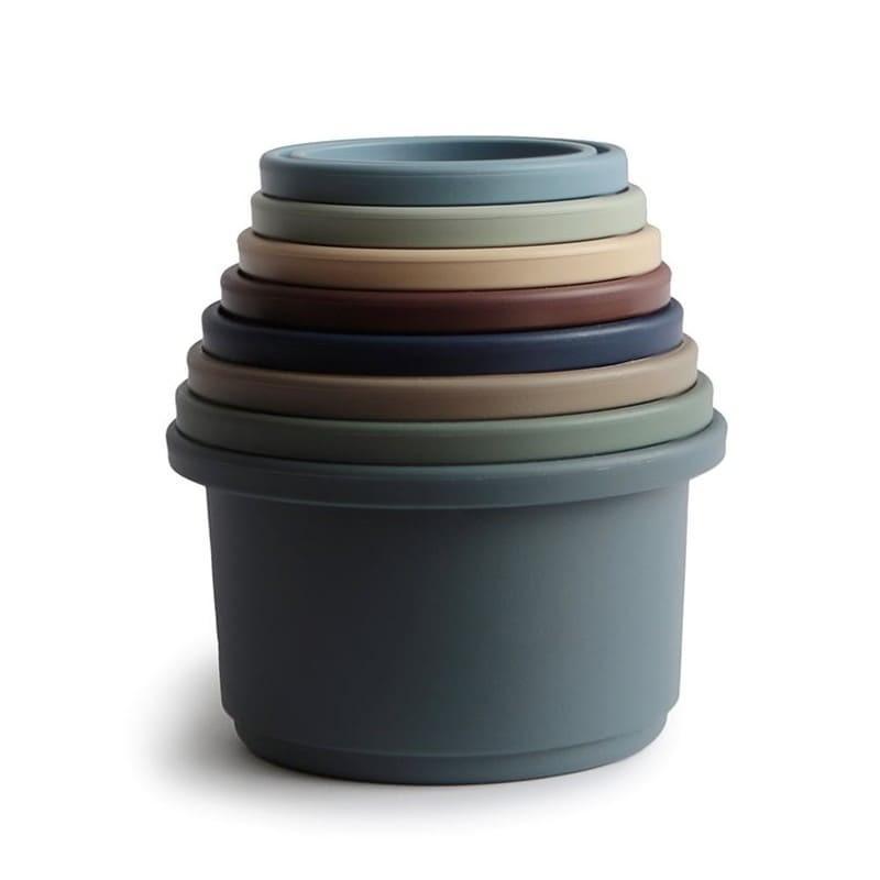 Mushie Forest cup tower hjälper ditt barn att utveckla både handmotoriken och hjärnan.