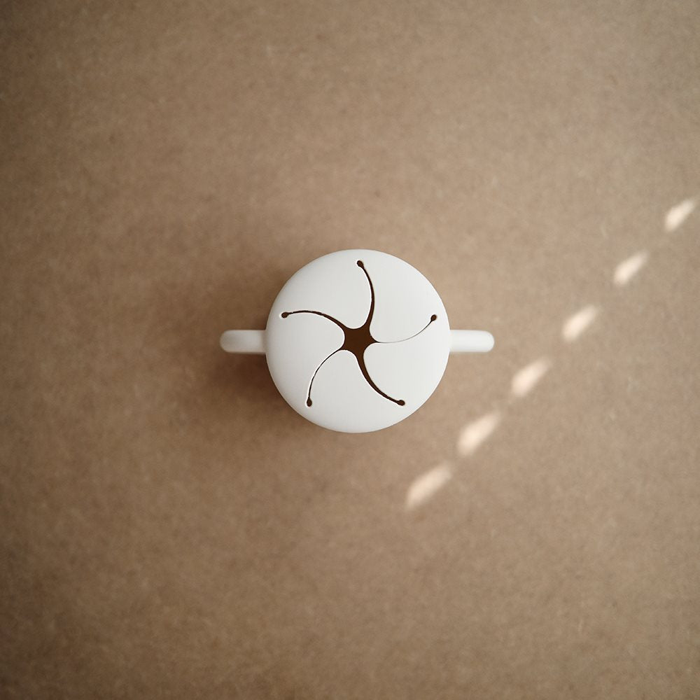Mushie Non-Snack Mug Ivory är ett unikt kärl för barn som uppmuntrar till lek och självständigt ätande.