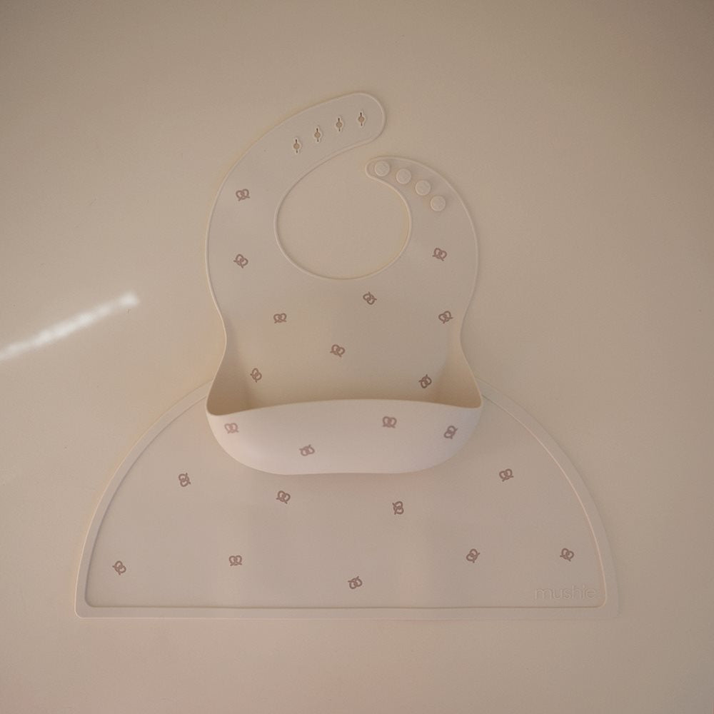 Bordsunderlägget finns i vackra naturinspirerade färger, vilket gör det enkelt att matcha med Mushies haklapp eller andra bordsartiklar.