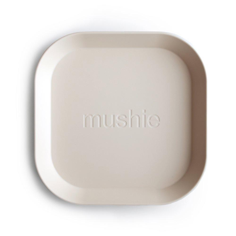Mushie Set med barntallrikar Square Ivory