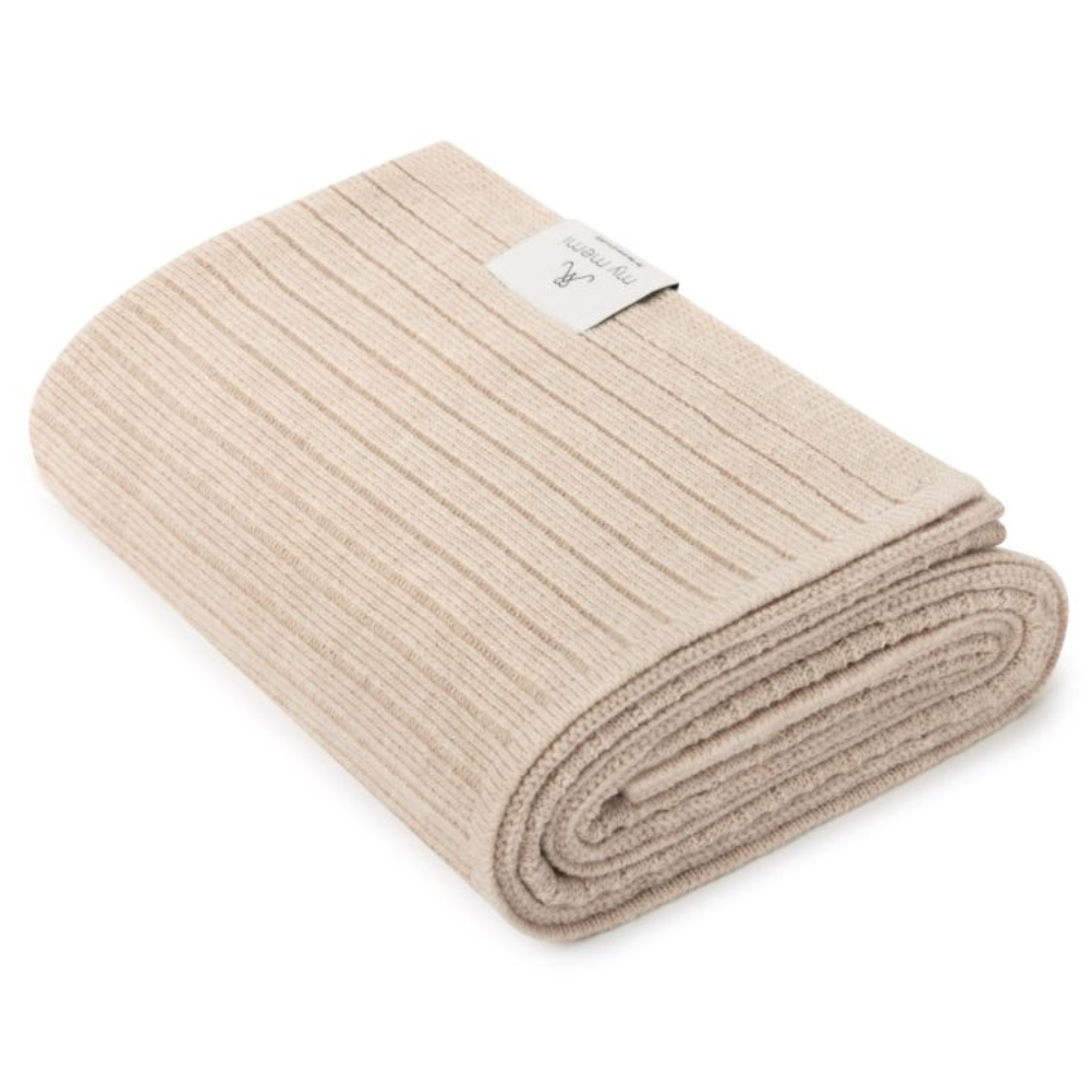 Vacker filt i 100 % merinoull med beige ränder från Memi Premium Collection.