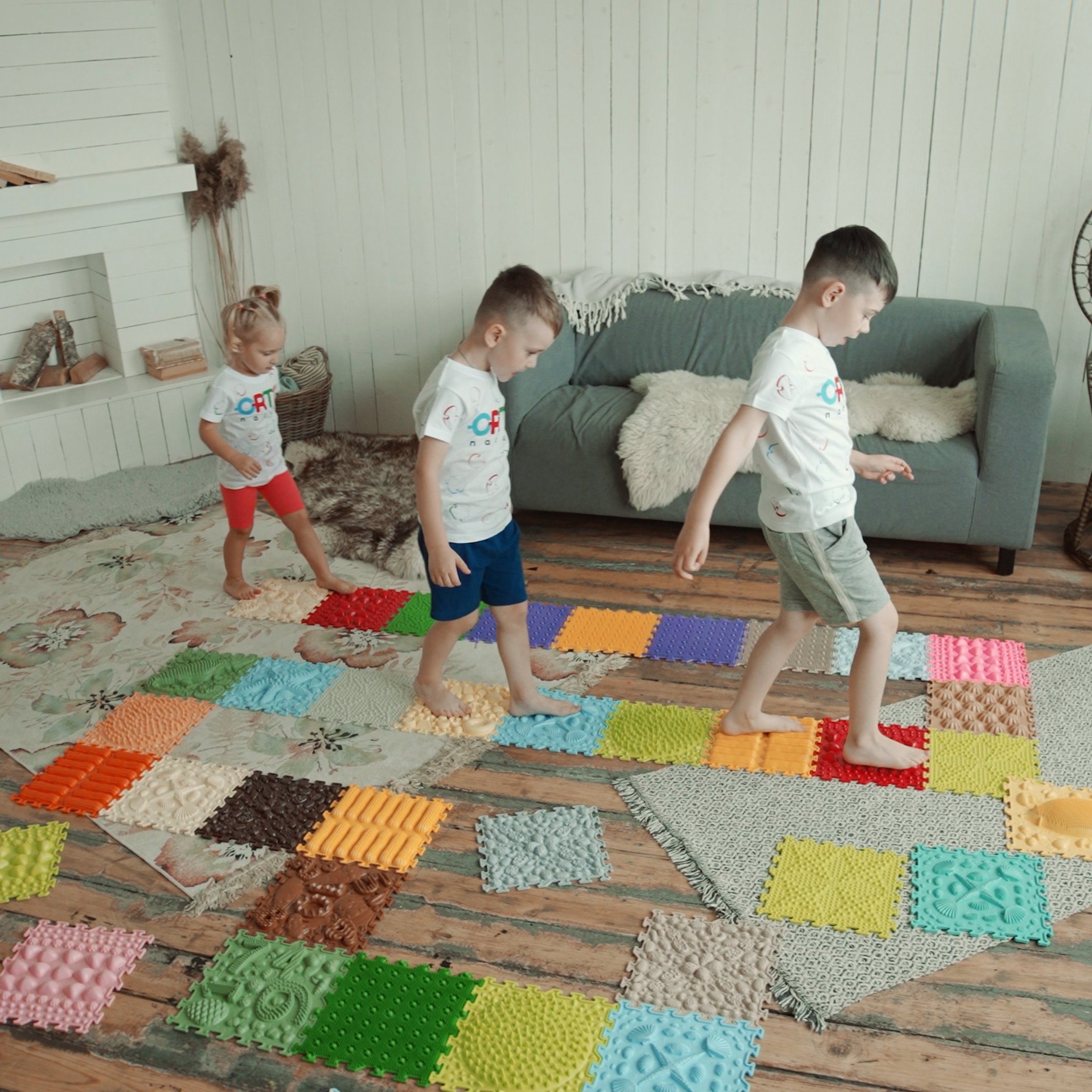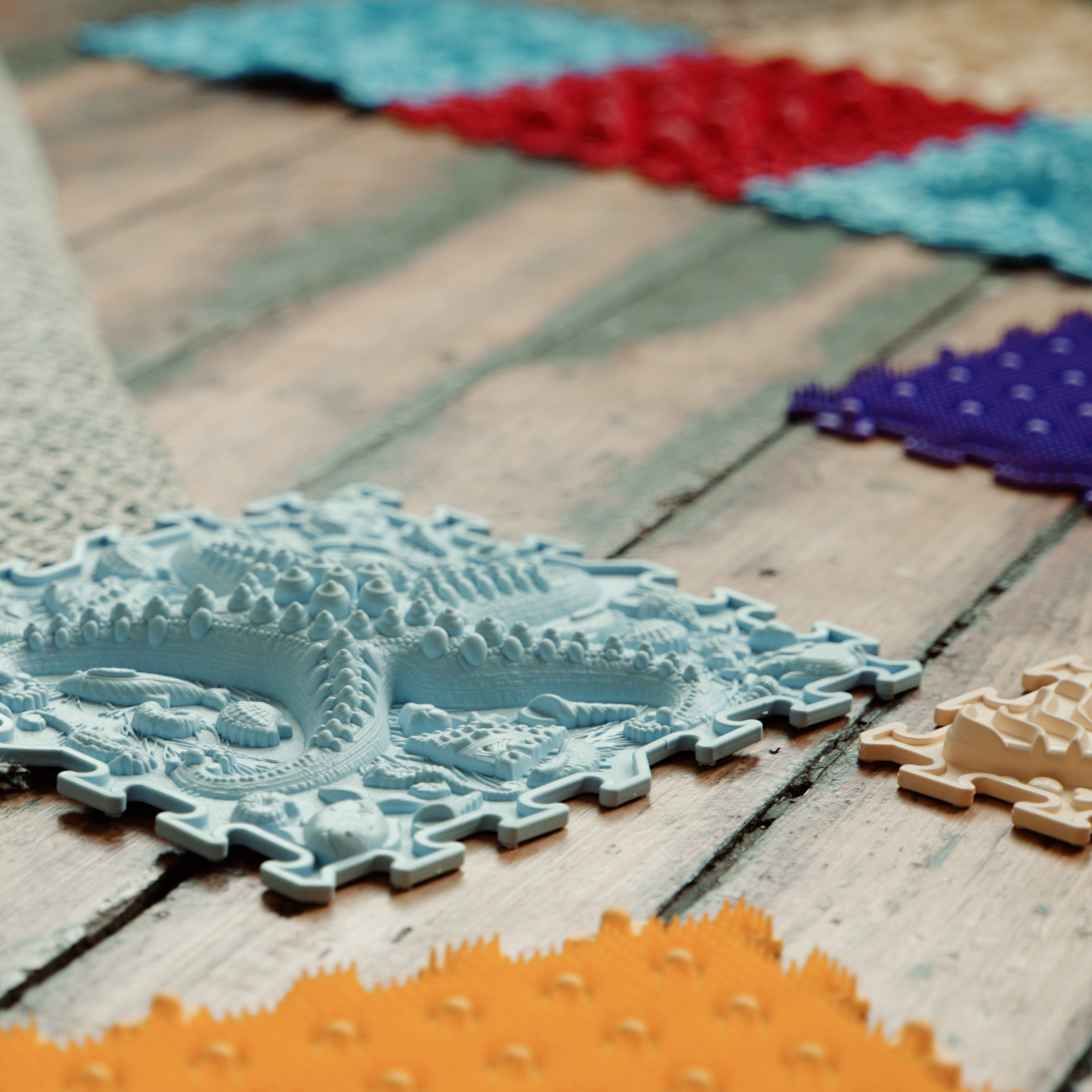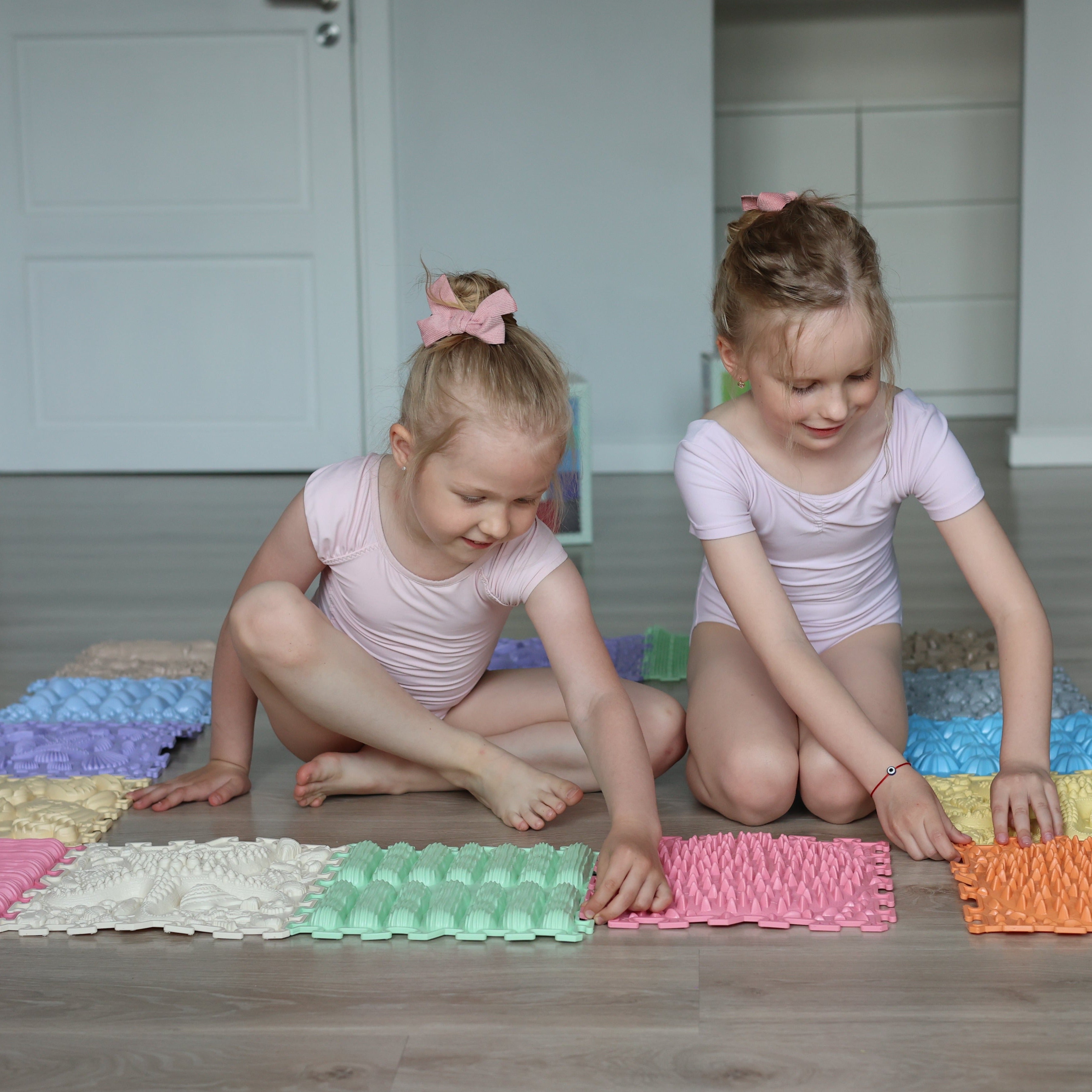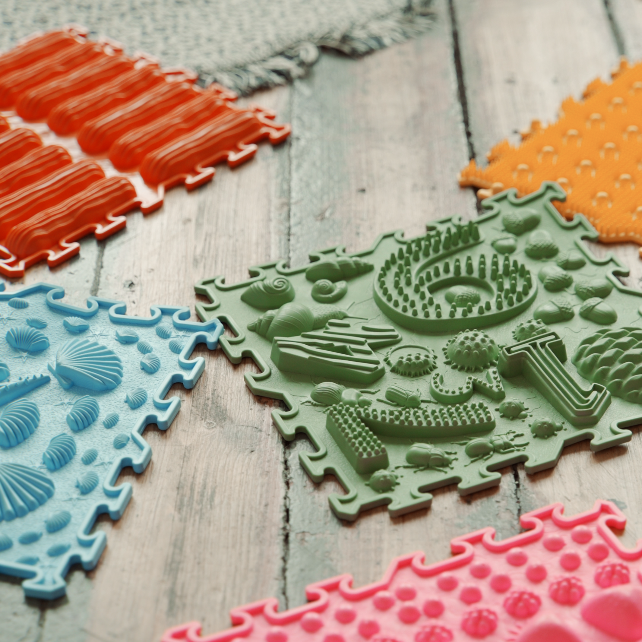 Den sensoriska mattan från Ortonature erbjuder ett brett utbud av texturer och färger som stimulerar fantasin, förbättrar blodcirkulationen, hjälper till att korrigera platta fötter, hjälper till att ta bort svullnad i benen och stöder vestibulära systemet.