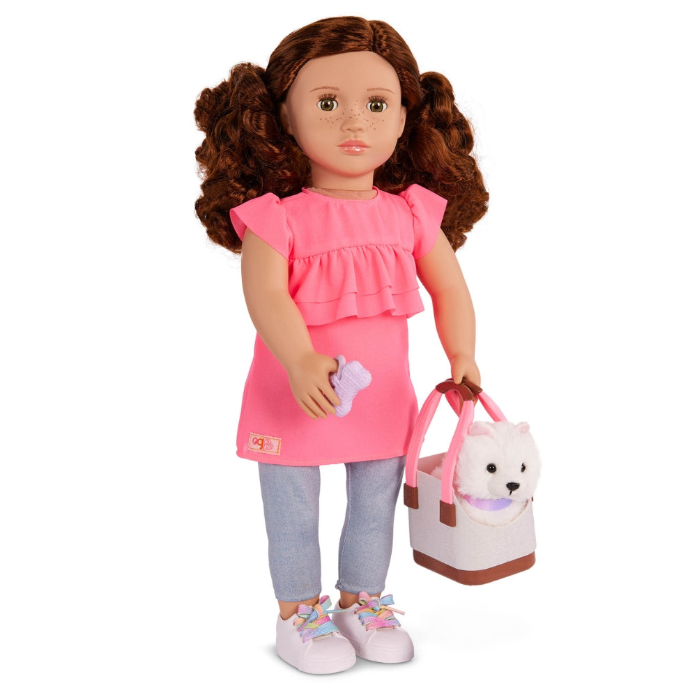 Söt Becca-babydocka med miniatyrspitz och tillbehör från Our Generation.