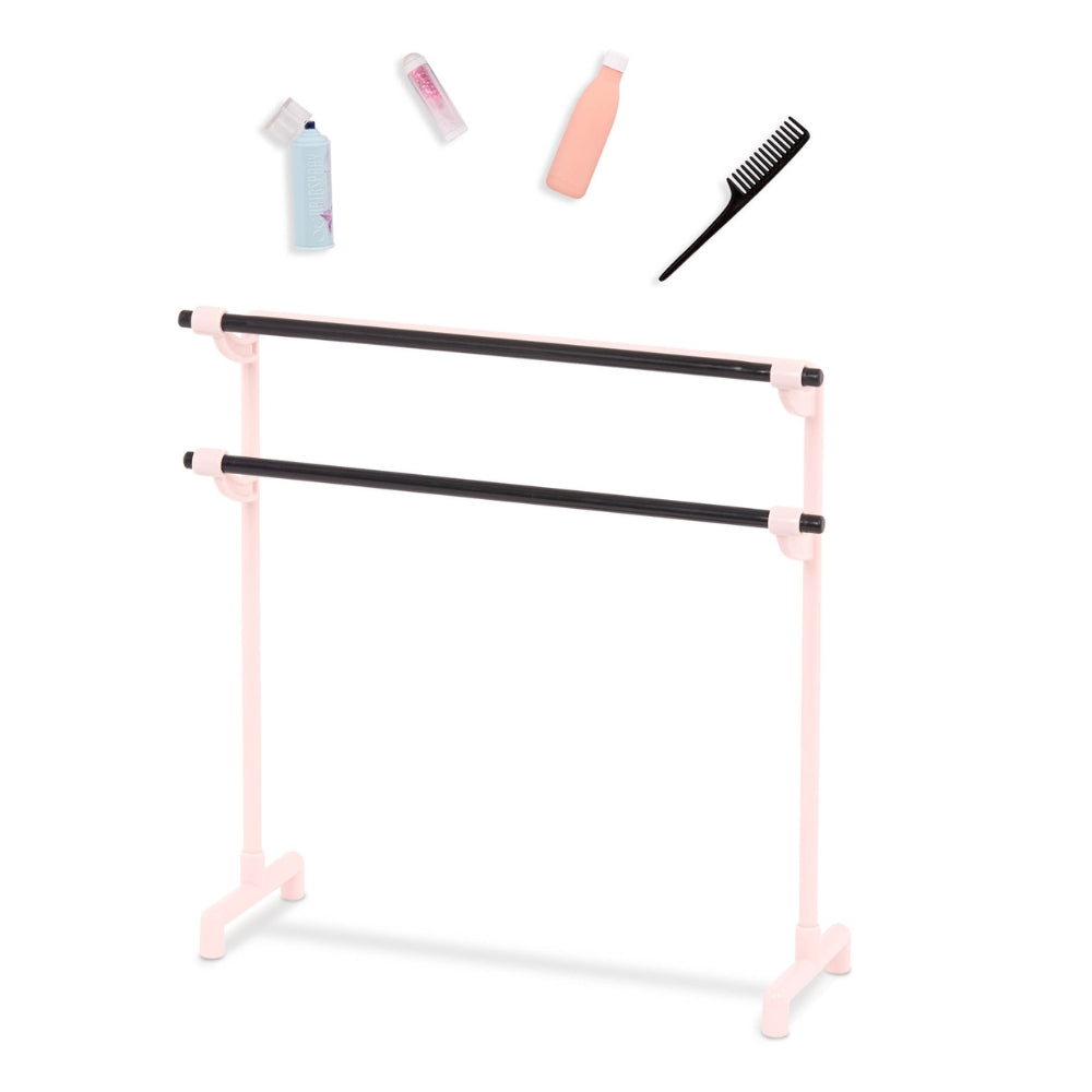 - Satsen innehåller: 46 cm lång blond docka med vackra ögon, balettdräkt med fastsydd tyllkjol, kort jumper, hårband med rosett, balettskor, träningsväska i päls, vattenflaska, kam, hårspray, läppglans, balettstång