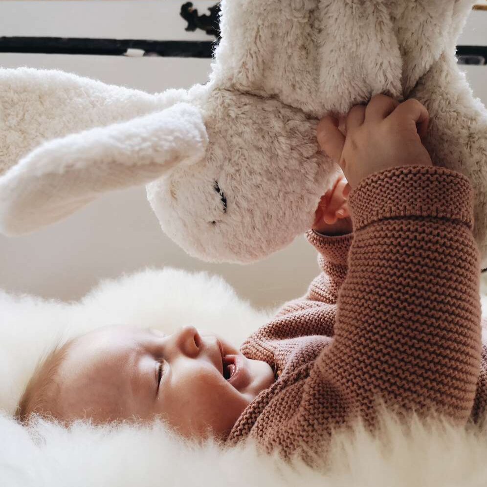 Den handgjorda stora kaninen är perfekt för barn från 2 månaders ålder.