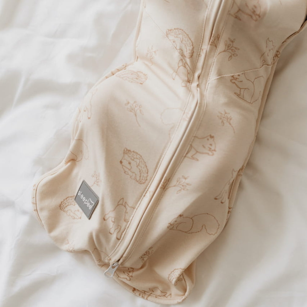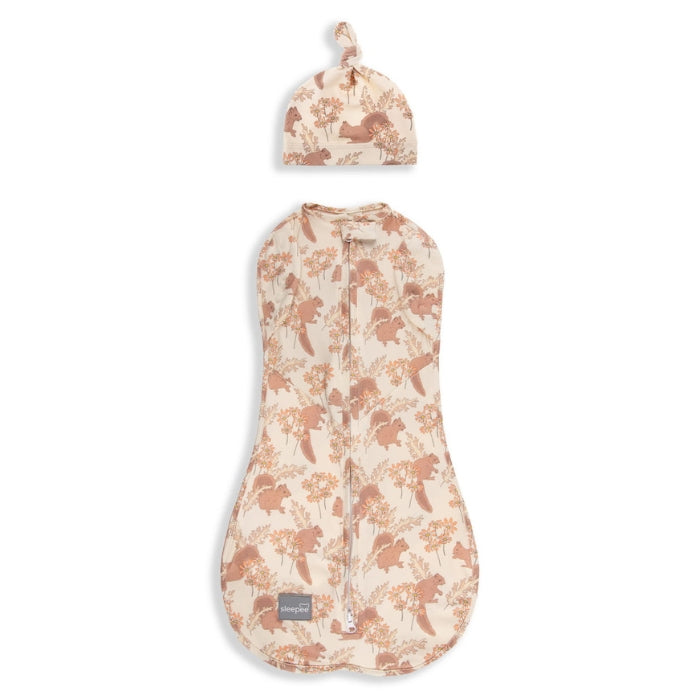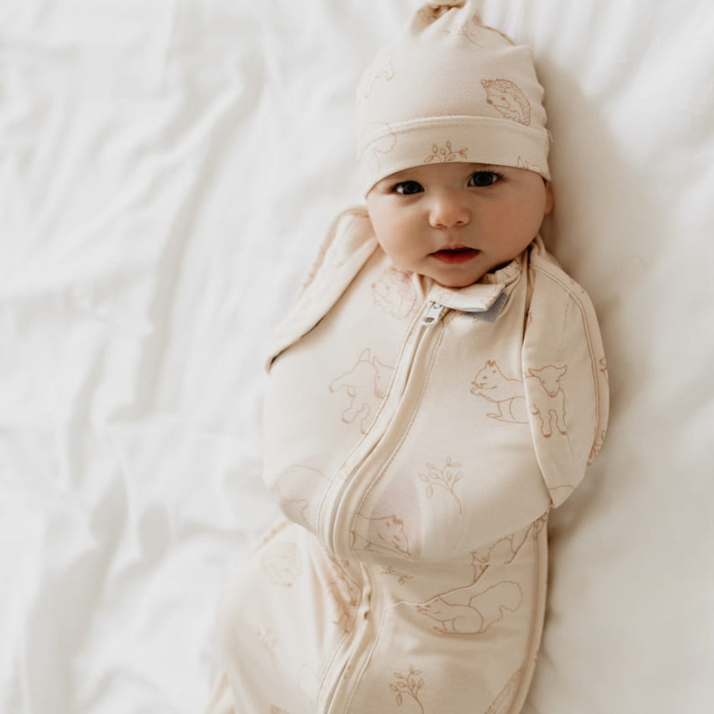 Sleepee Baby Wrap med mössa First Step Vintage Animals Almond