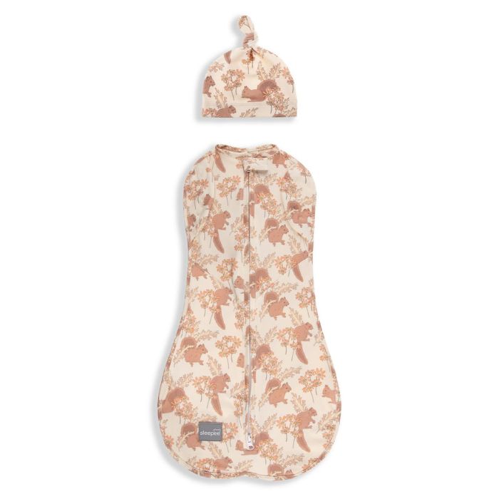 Sleepee Baby Wrap med mössa Second Step Vintage Animals Almond