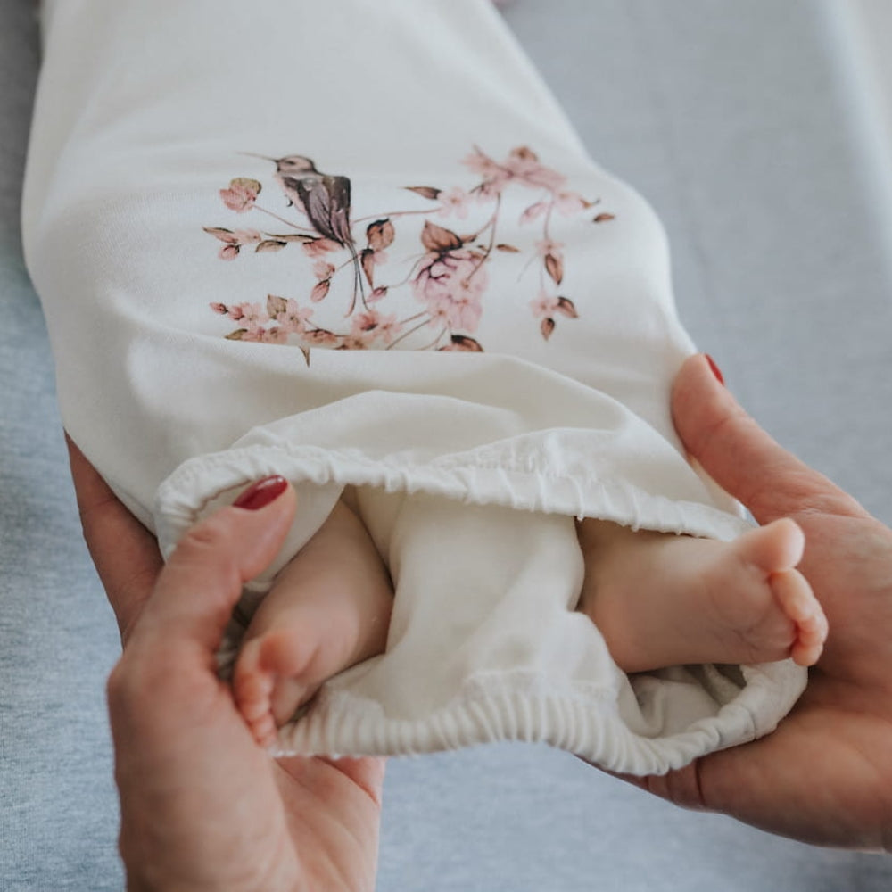 Sleepee Kangaroo baby bodysuit med Bloom mössa