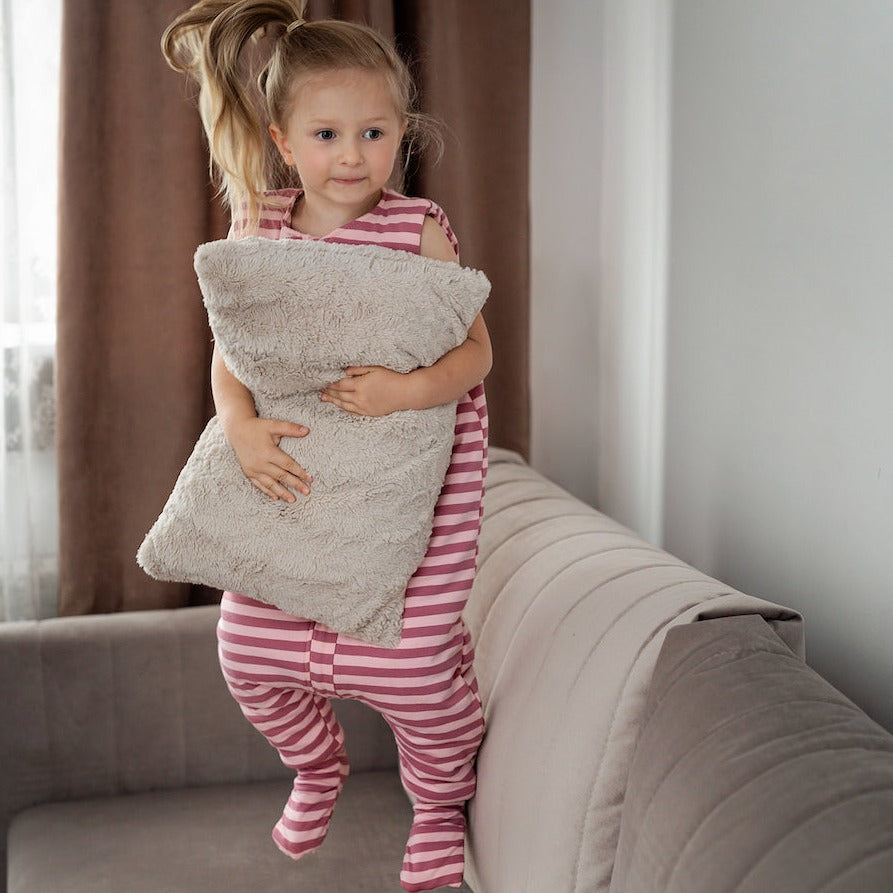 Sleepee sovpåse med ben är tillverkad av mycket mjuk bomullstrikå, fylld med silikonfleece för långvarig värme och komfort under sömnen.