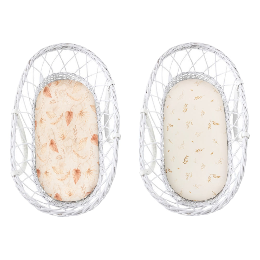 Setet innehåller två lakan tillverkade av högkvalitativ, tjock bomullstrikå med 8 % elastan, vilket gör dem extra mjuka, stretchiga och perfekta för alla babykorgar, moseskorgar eller vaggar.