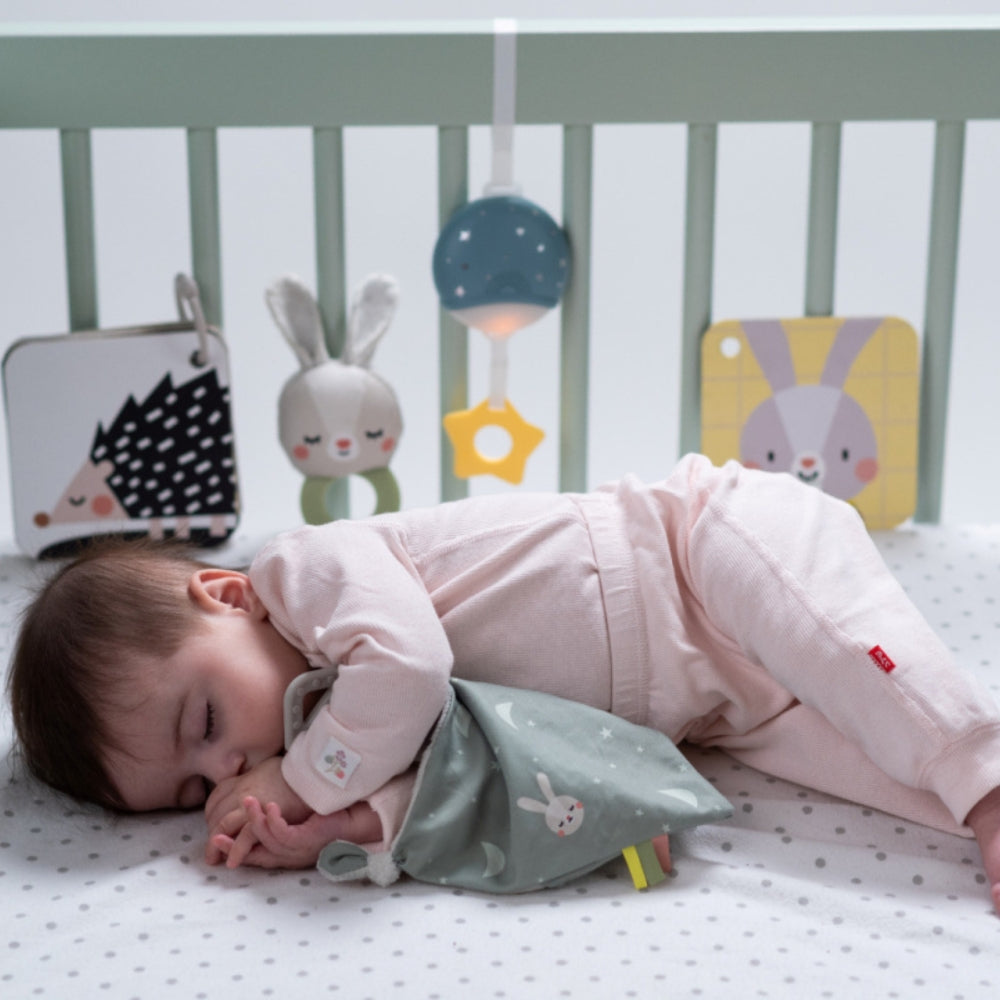En gosig filt med bitleksaker som ger en känsla av trygghet och hjälper barnet att somna. Gosfilten har också bitleksaker som kan hjälpa till att lugna tandköttet.