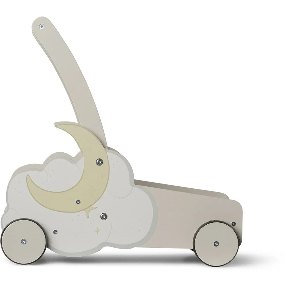 Babywalkern är dekorerad med ett fint måntryck på båda sidor, vilket bidrar till dess charm och gör lektiden mer fantasifull och inspirerande.
