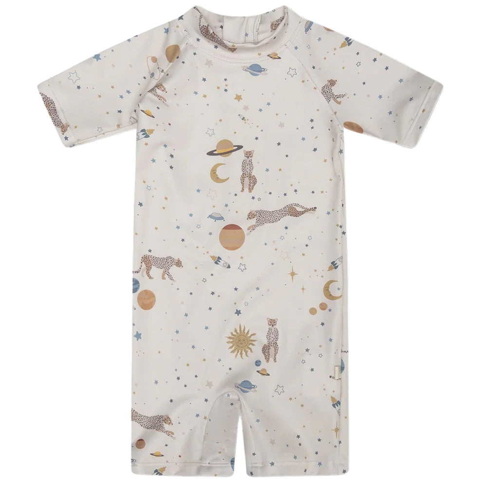 That's Mine-badbyxan har korta ärmar och korta ben och erbjuder solskydd UV 40+, perfekt för sommardagar.