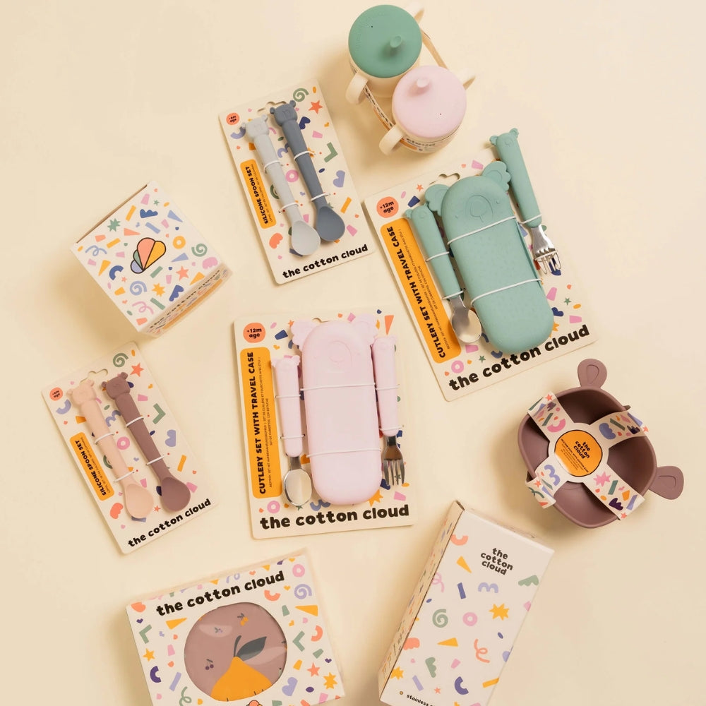 Cotton Cloud har också tagit hand om den praktiska aspekten - ett silikonöverdrag ingår, vilket gör att du kan förvara ditt barns bestick på ett hygieniskt sätt hemma och på språng.