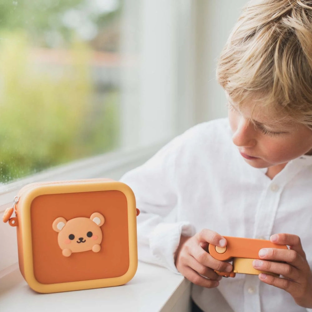 Det björnformade silikonfodralet är perfekt för barn och vuxna som vill förvara och skydda sina Zoofamily-kameror eller walkie-talkies med stil.