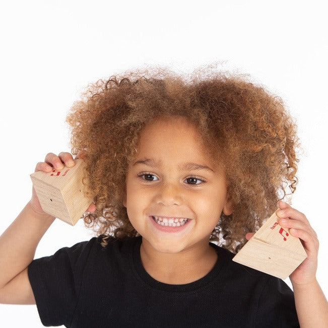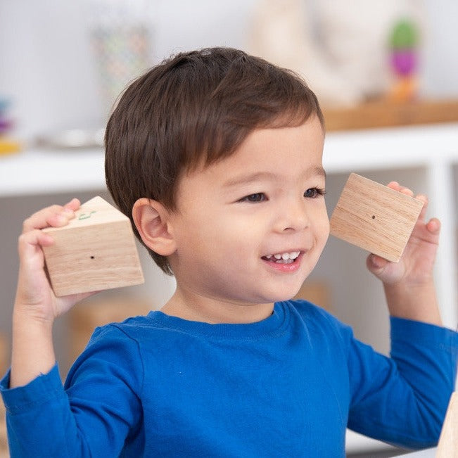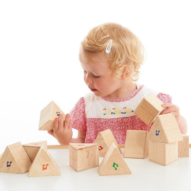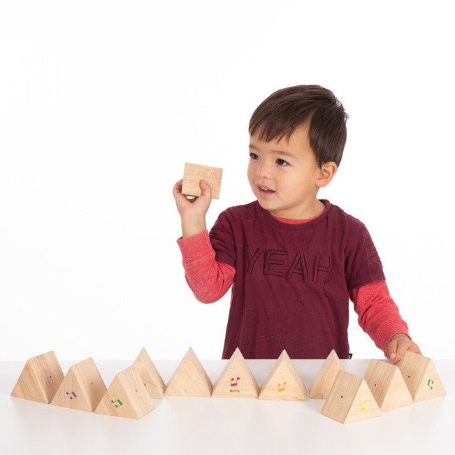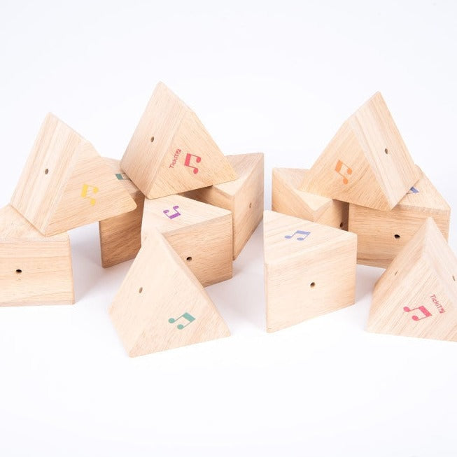 Träklossar för barn, triangulära ljudprismor från TickiT.
