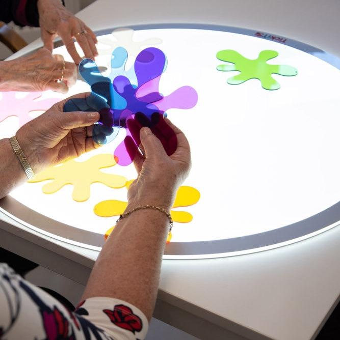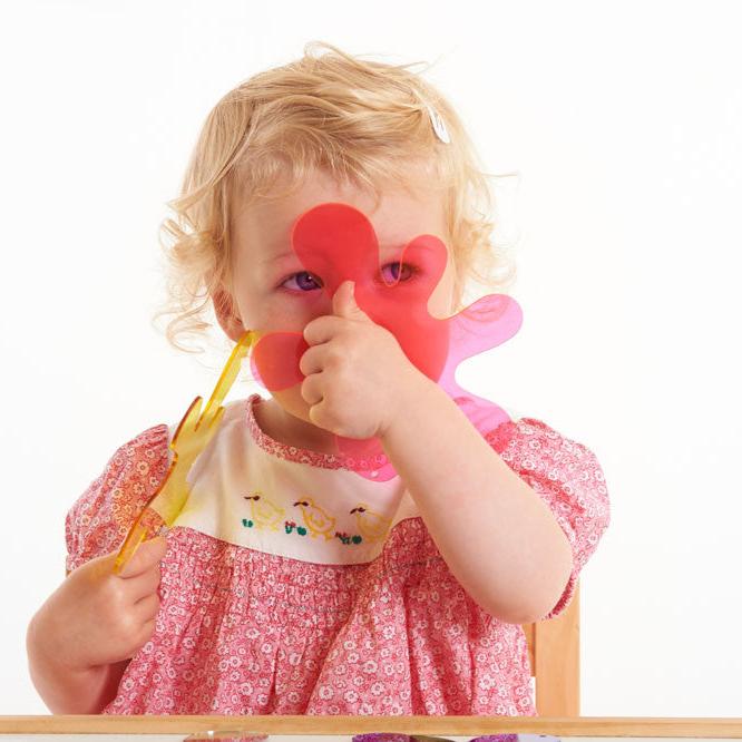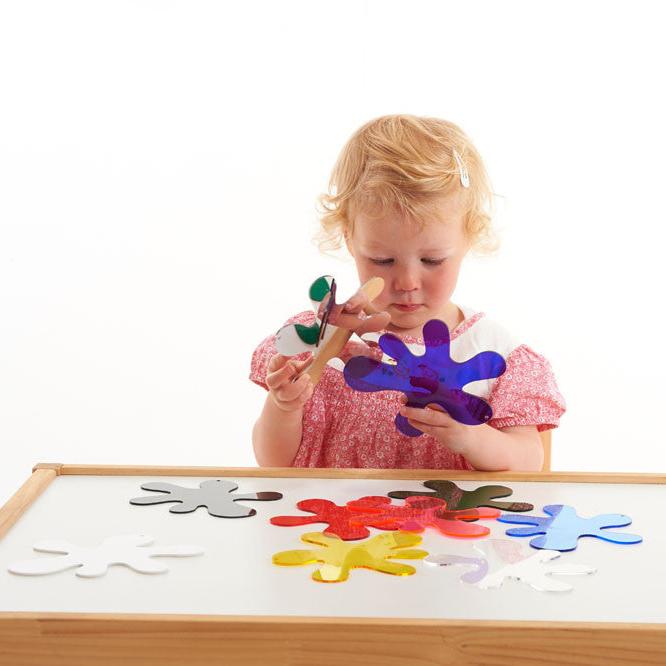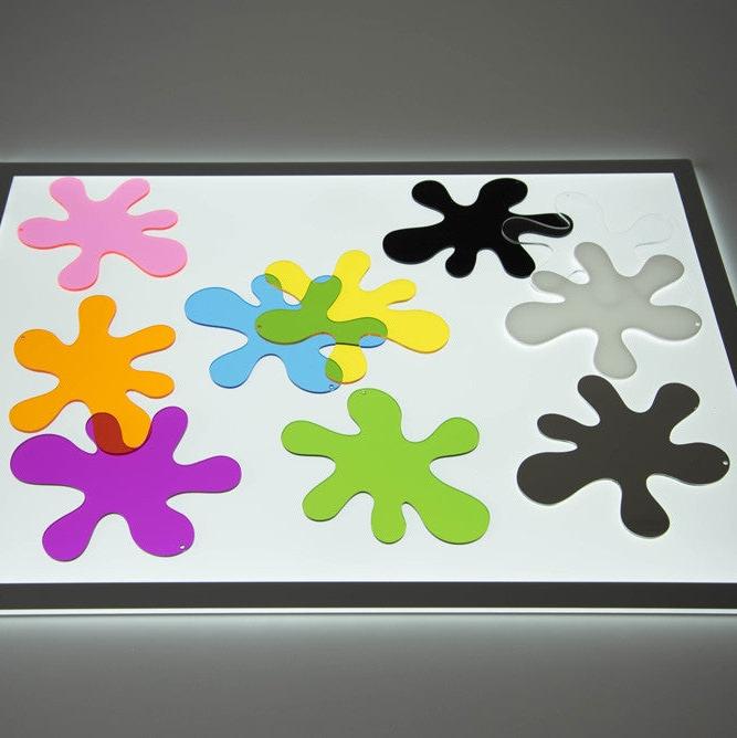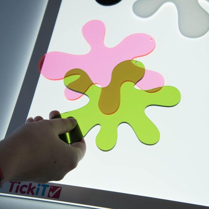 De är perfekta för lek med ljuslåda, där barn kan experimentera med färgblandning, matchning, observation av ljus och skapande av skuggor.