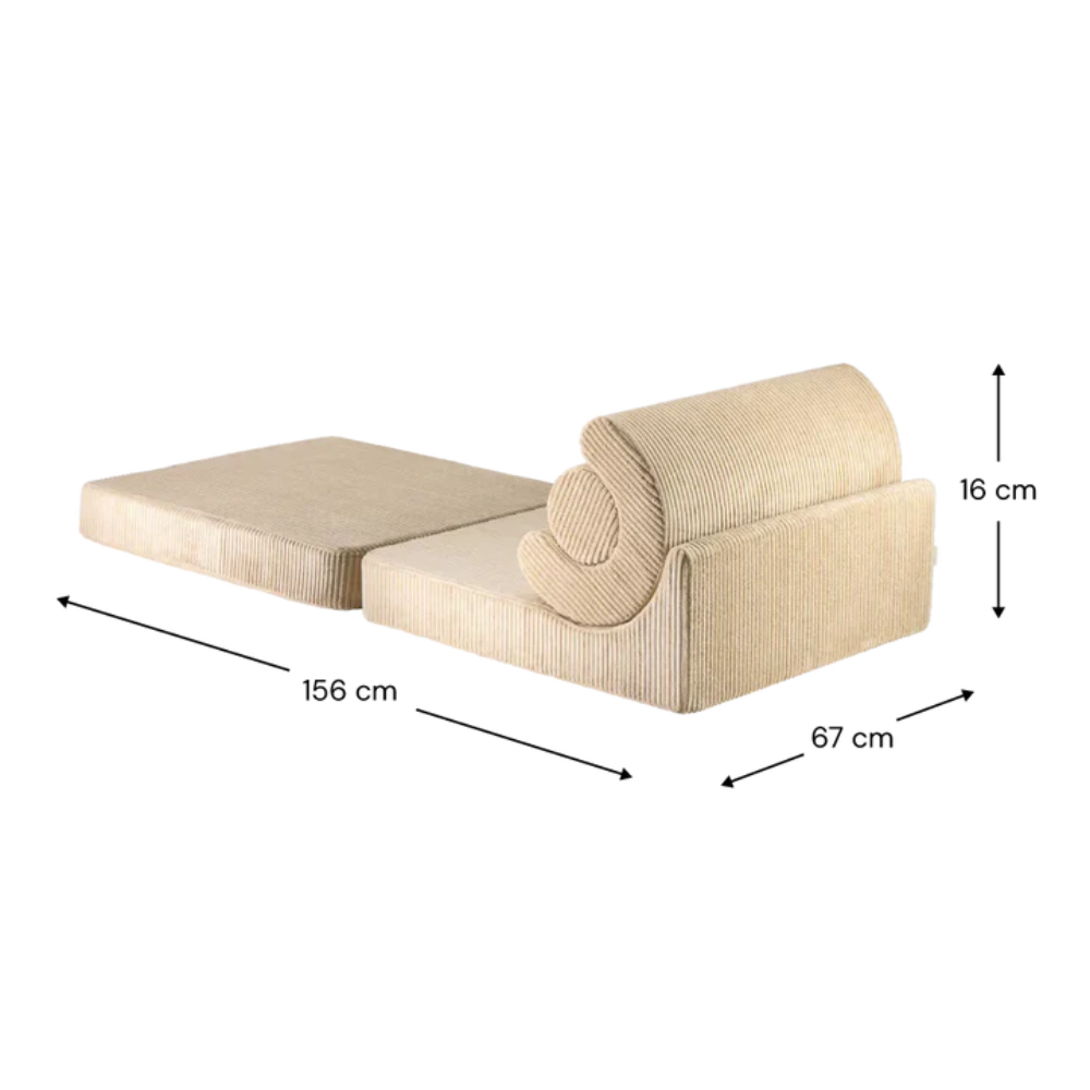 Den är klädd med ett mjukt, avtagbart och tvättbart överdrag för komfort och enkel rengöring – perfekt för små barns vardagliga äventyr.