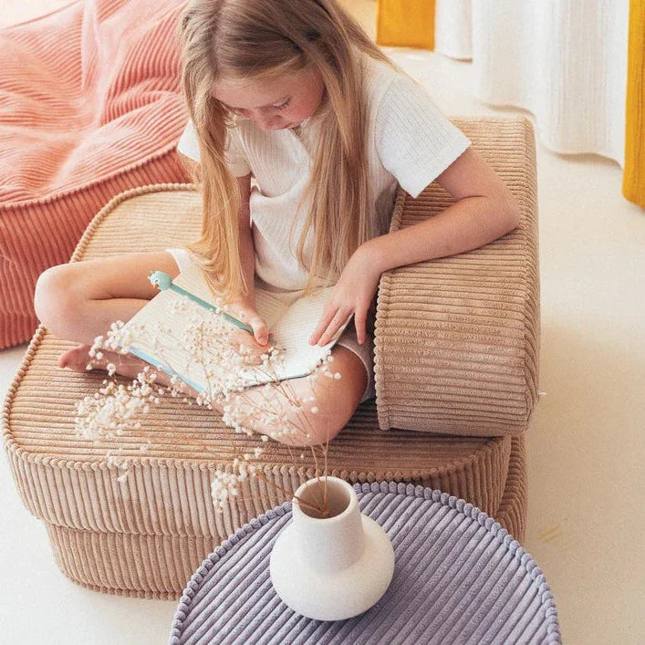 Wigiwama-babypuffen är inte bara en stilren accessoar, utan också en funktionell möbel som kan användas till flera olika ändamål, till exempel som fotpall eller extra sittplats.