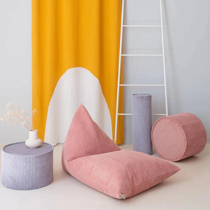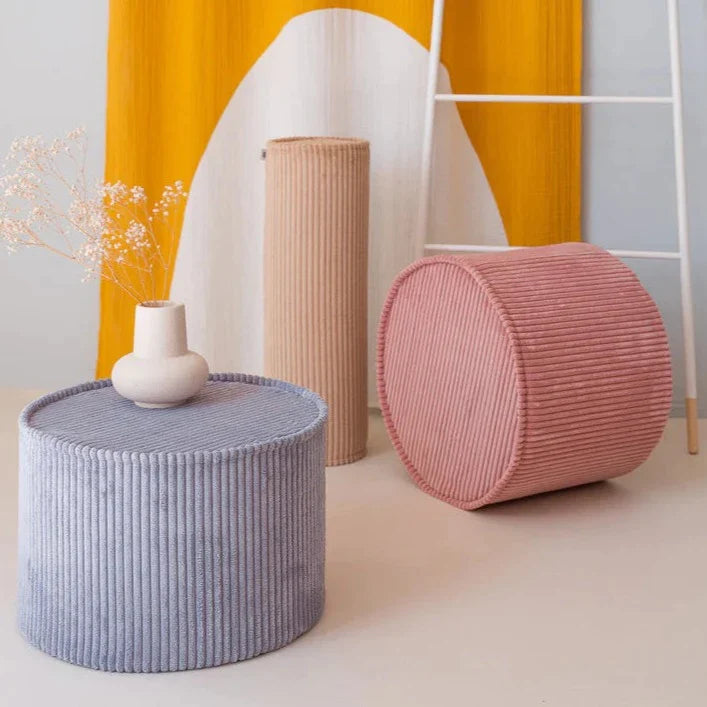 Wigiwamas barnpuff är inte bara en stilren accessoar, utan också en funktionell möbel som kan användas till flera olika saker, till exempel som fotpall eller extra sittplats.