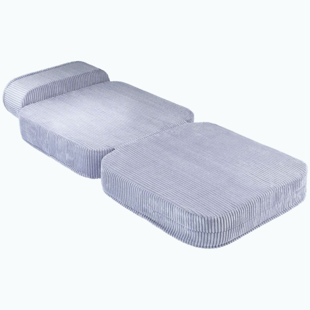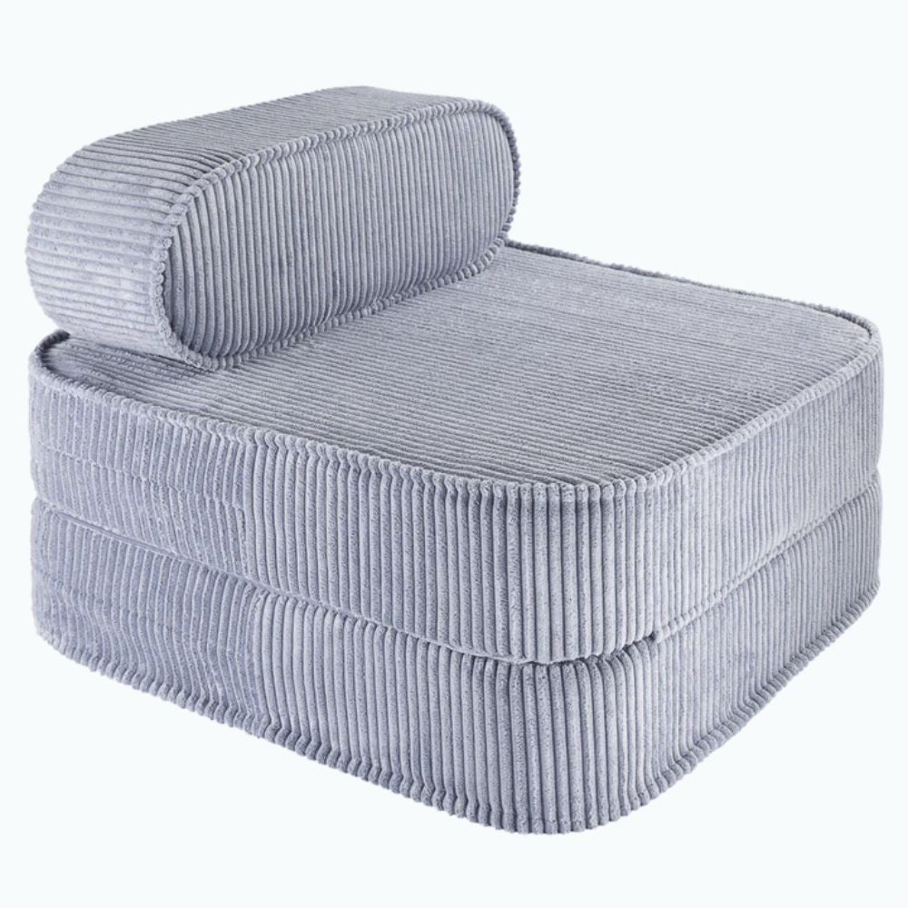 Barnstolen Blueberry Blue Flip i corduroy från Wigiwama är ett snyggt och praktiskt tillskott till alla barnrum.