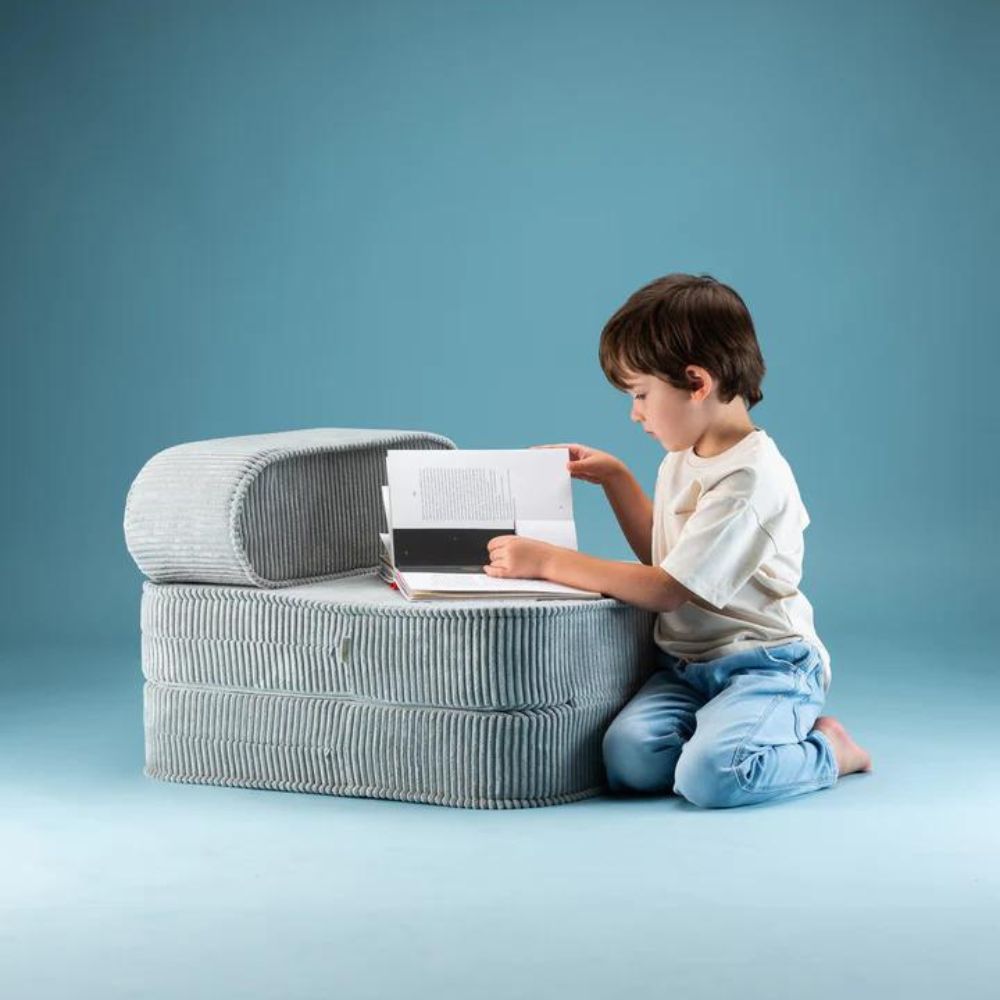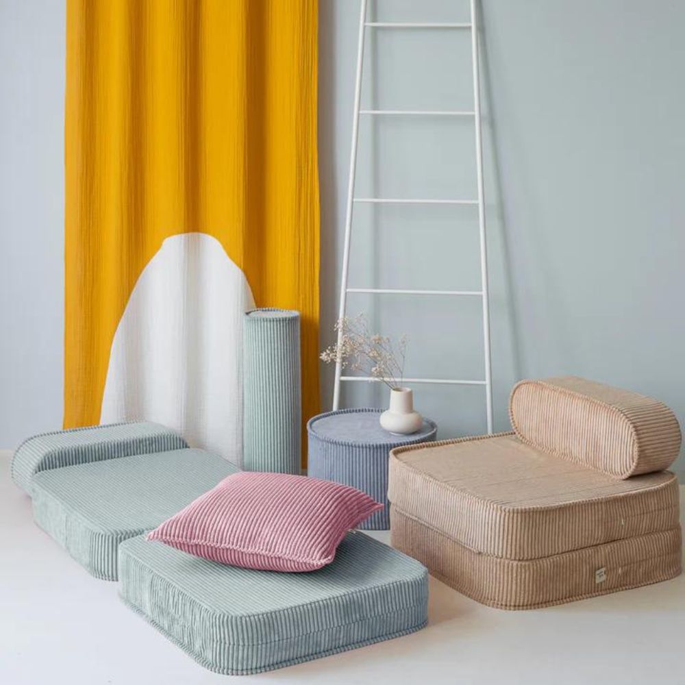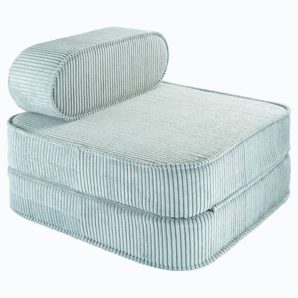 Barnstolen Peppermint Green Flip i corduroy från Wigiwama är ett snyggt och praktiskt tillskott till alla barnrum.