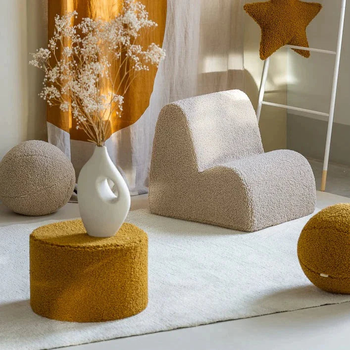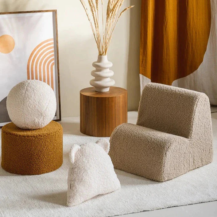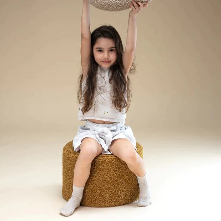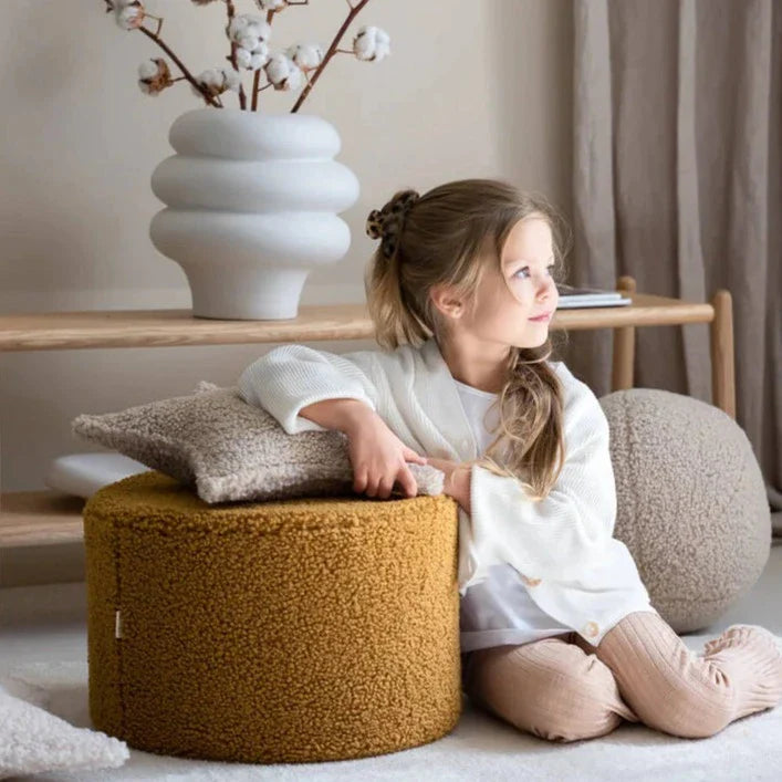 Wigiwamas barnpuff är inte bara en stilren accessoar, utan också en funktionell möbel som kan användas till flera olika saker, till exempel som fotpall eller extra sittplats.